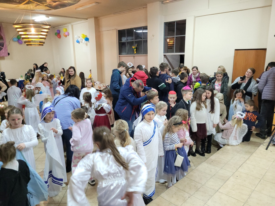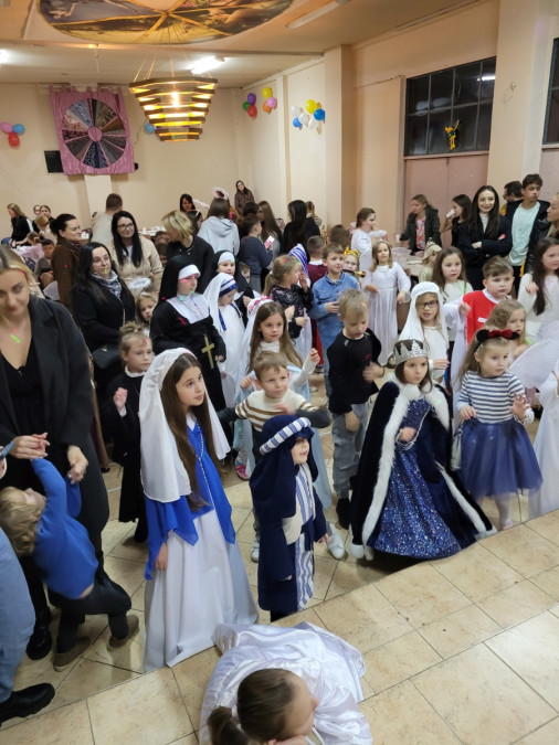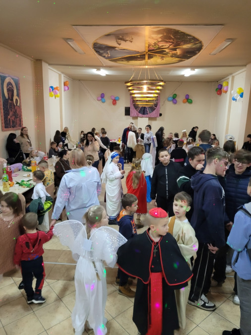 Siódmy raz w naszej parafii odbył się Bal Wszystkich Świętych. To pomysł naszego wikariusza ks. Piotra Auguścika i młodzieży oazowej. - Chcieliśmy zrobić coś radosnego, coś co będzie alternatywą dla pogańskiego obrzędu halloween i wskazaniem, jak piękna może być nasza droga do świętości - mówi ks. Piotr. Nasza parafialna stodoła 31 X zamieniła się w salę, gdzie tańczyli, śpiewali, jedli i śmiali się święci, a właściwie nasze dzieciaki i młodzież przebrani za świętych, w liczbie wyjątkowej – pond 100 osób. Całość spotkania poprowadziła młodzież oazowa. Ks. Piotr wraz z animatorami rozstrzygnęli konkurs na najpiękniejszy strój świętego. Na podium stanęli: św. Antoni z Padwy, św. Barbara i św. Faustyna Kowalska. To był wspaniały i wyjątkowy wieczór. Dziękujemy wszystkim, którzy zaangażowali się w przygotowanie tego pięknego wydarzenia. Do zobaczenia za rok.
