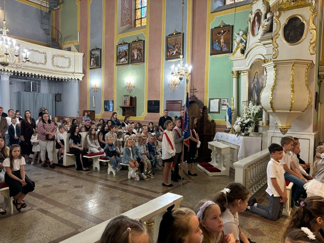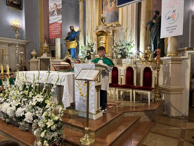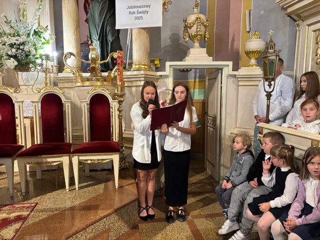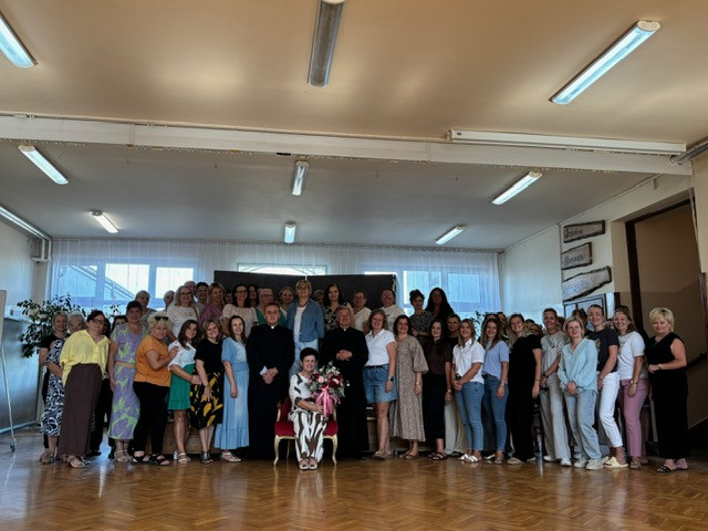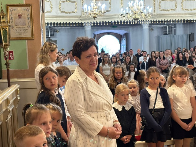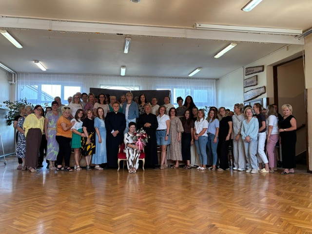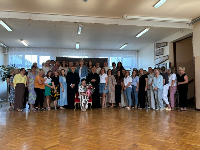 Z wielką wdzięcznością i uznaniem dziękujemy Pani Bożenie Chłopeckiej za 44 lata oddanej i owocnej posługi katechetycznej. Przez wszystkie te lata była Pani nie tylko nauczycielem, ale przede wszystkim świadkiem wiary dla wielu pokoleń dzieci i młodzieży. Dziękujemy za trud nauczania, za cierpliwość i serce wkładane w przygotowanie do Pierwszej Komunii Świętej, Rocznicy Komunii oraz Sakramentu Bierzmowania. Dziękujemy za piękne jasełka, zaangażowanie w Orszak Trzech Króli, wyjazdy i kolonie parafialne, które na zawsze pozostaną w pamięci uczestników. Pożegnanie w gronie pedagogicznym oraz dzisiejsza Msza Święta sprawowana w intencji Pani Bożeny były wyrazem naszej wspólnej wdzięczności i modlitwy. Dziękujemy Bogu za dar Pani obecności i świadectwa. Z serca życzymy Pani Bożenie zdrowia, radości i nieustającego pokoju serca na każdy kolejny dzień. Z wyrazami szacunku i wdzięczności