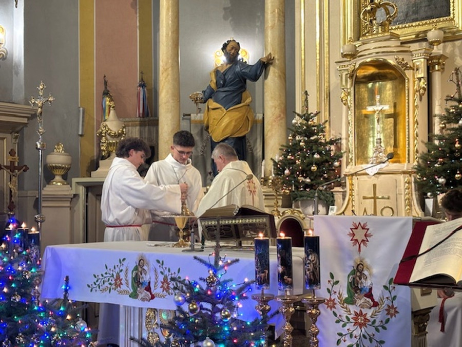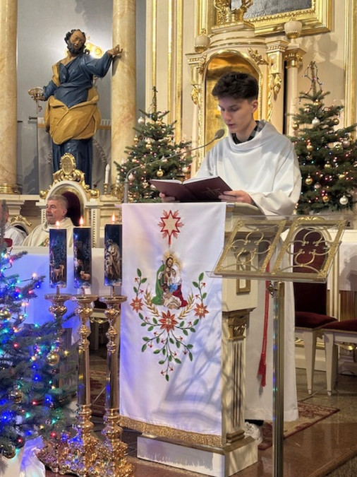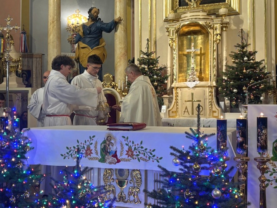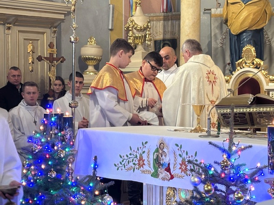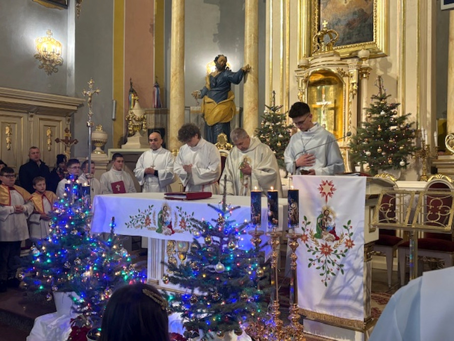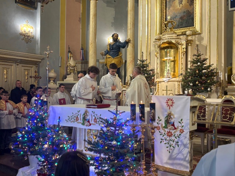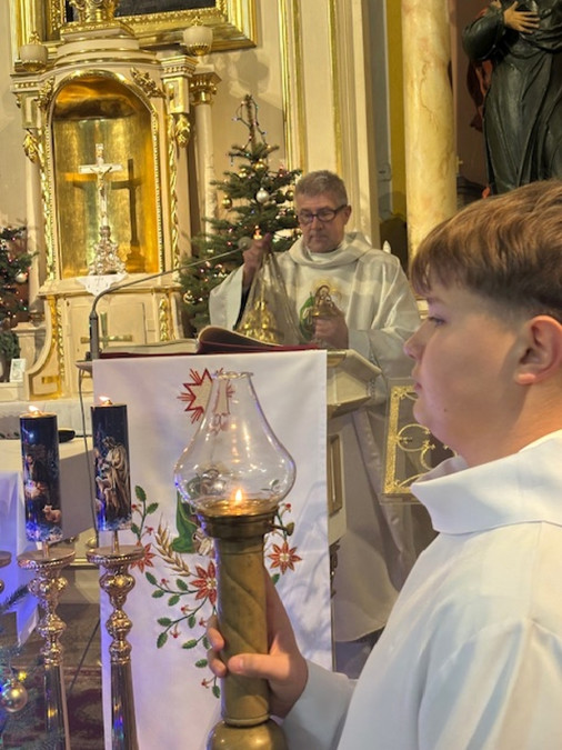 Dzisiejszej nocy uczestniczyliśmy w wyjątkowej, uroczystej Pasterce. Z całego serca dziękujemy wszystkim, dzięki którym miała ona tak podniosły charakter.Wyrażamy wdzięczność osobom odpowiedzialnym za świąteczny wystrój, Scholi i Panu Organiście za piękny śpiew oraz Ministrantom za uroczystą asystę podczas tej Mszy Świętej.