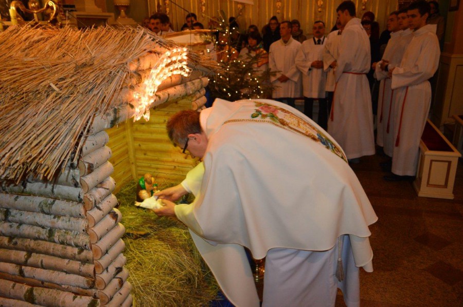 Tradycyjnie 24 grudnia o godz. 24.00 rozpoczęła się w naszej parafialnej świątyni uroczysta Pasterka. Mszy św. odprawianej w intencji całej naszej parafii, przewodniczył proboszcz ks. Ireneusz Kosecki. W uroczystej procesji, w asyście ministrantów, przyniósł on do żłóbka znajdującego się przed głównym ołtarzem, figurkę maleńkiego Pana Jezusa i złożył ją w żłóbku, na sianie. Piękna kolęda „Wśród nocnej ciszy", śpiewana przez uczestników Pasterki, którzy po brzegi wypełnili świątynię, rozpoczęła Święta Bożego Narodzenia. W homilii proboszcz przypomniał, że prawdziwe Boże Narodzenie dokonuje się w nas wtedy, kiedy przyjmujemy Chrystusa w Komunii św. i żyjemy na co dzień Jego nauką. Na zakończenie Pasterki ks. proboszcz złożył parafianom i gościom serdeczne życzenia świąteczne.