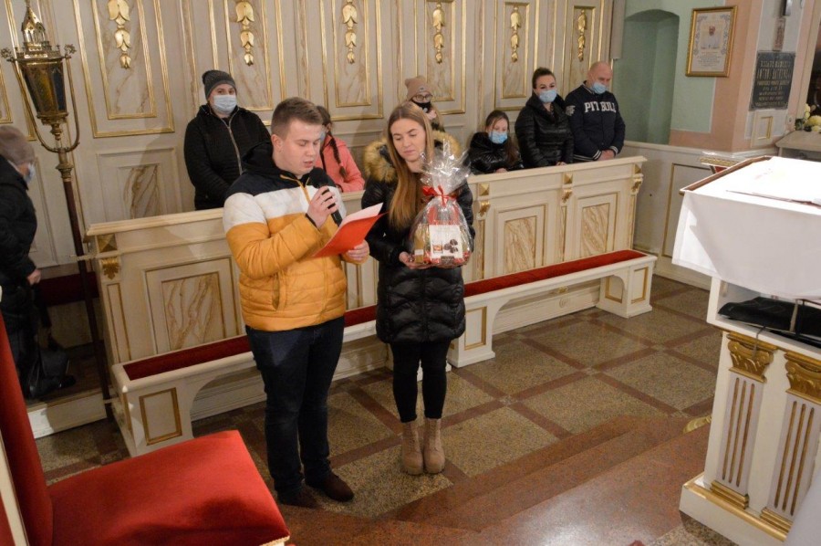 i Kacper Kozłowski dziękując w imieniu całej parafii ks. Marcinowi za